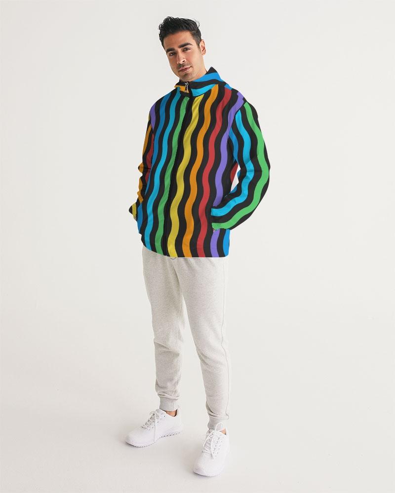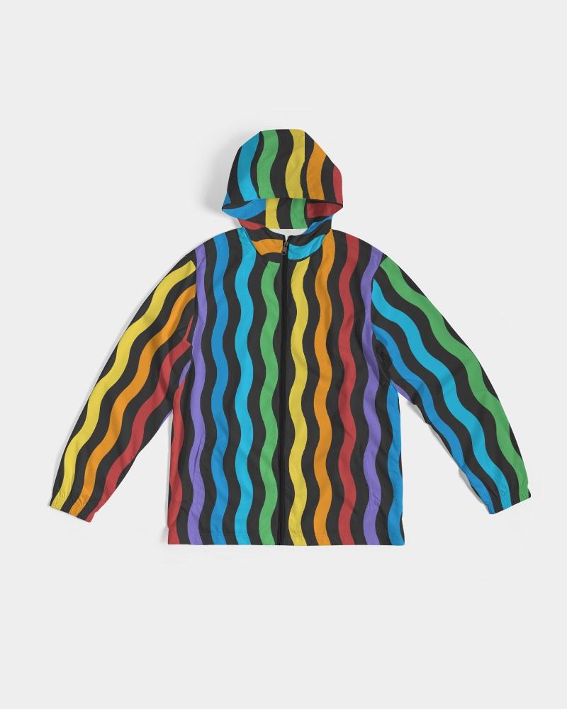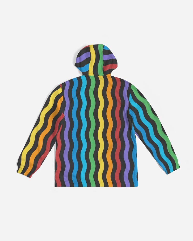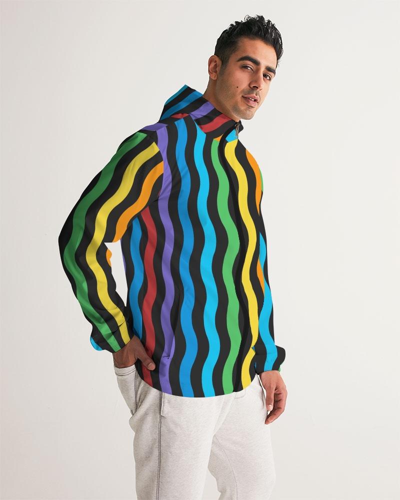 Mens Hooded Windbreaker - Rainbow Striped Water Resistant Jacket -