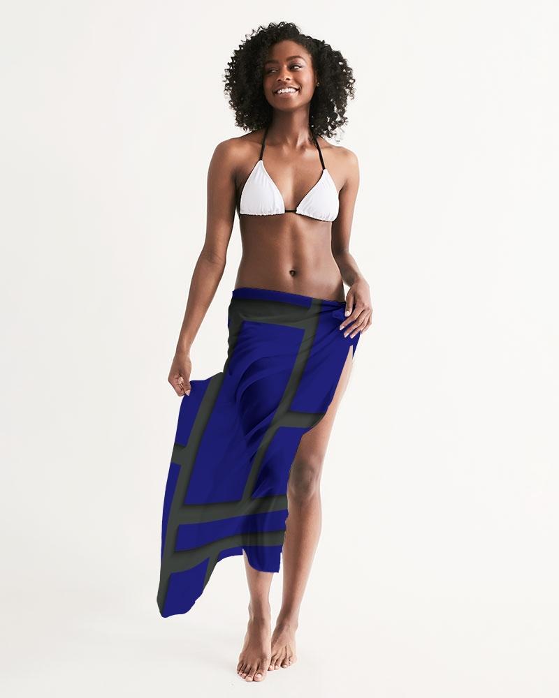 Sheer Sarong Swimsuit Cover Up Wrap / Geometric Dark Blue and Black