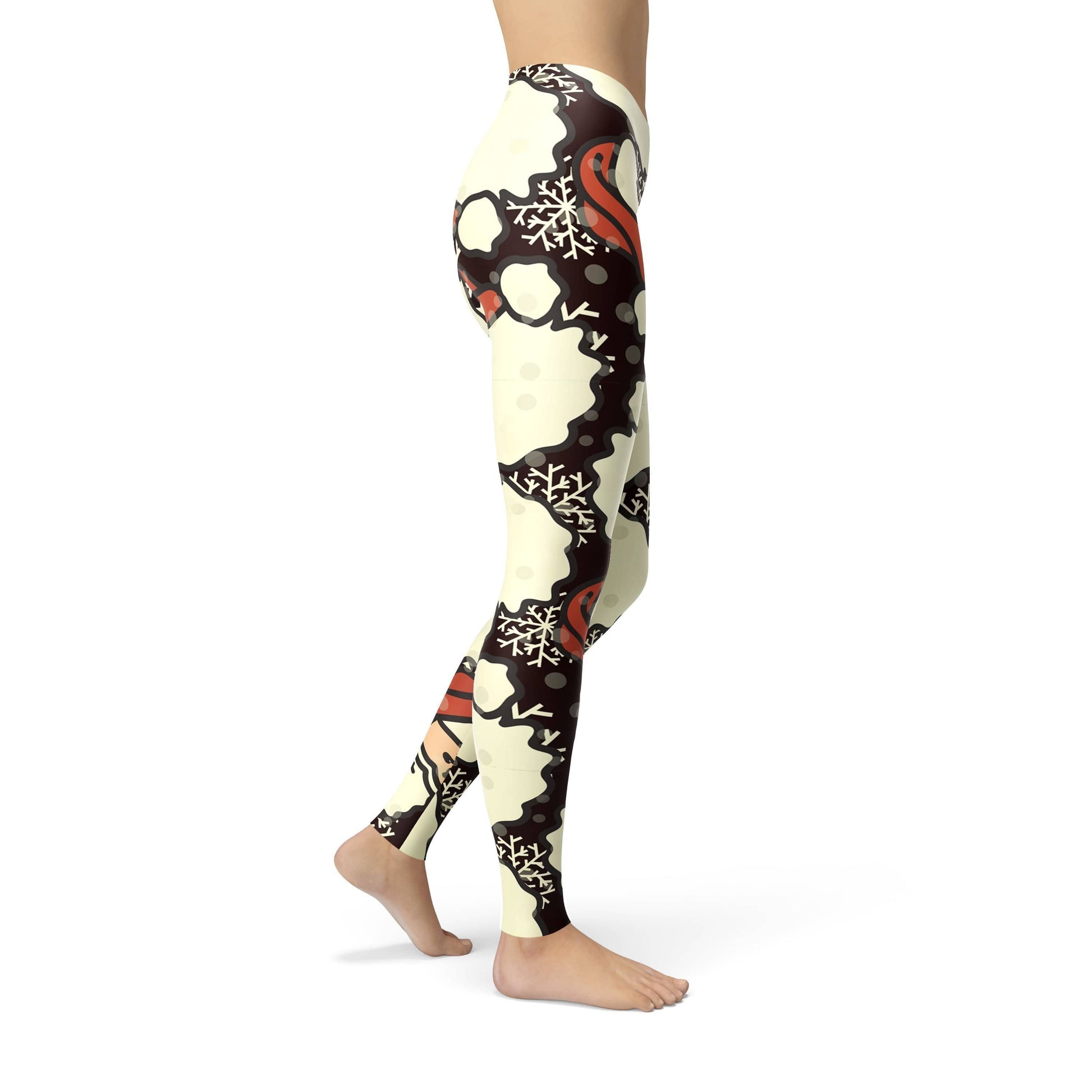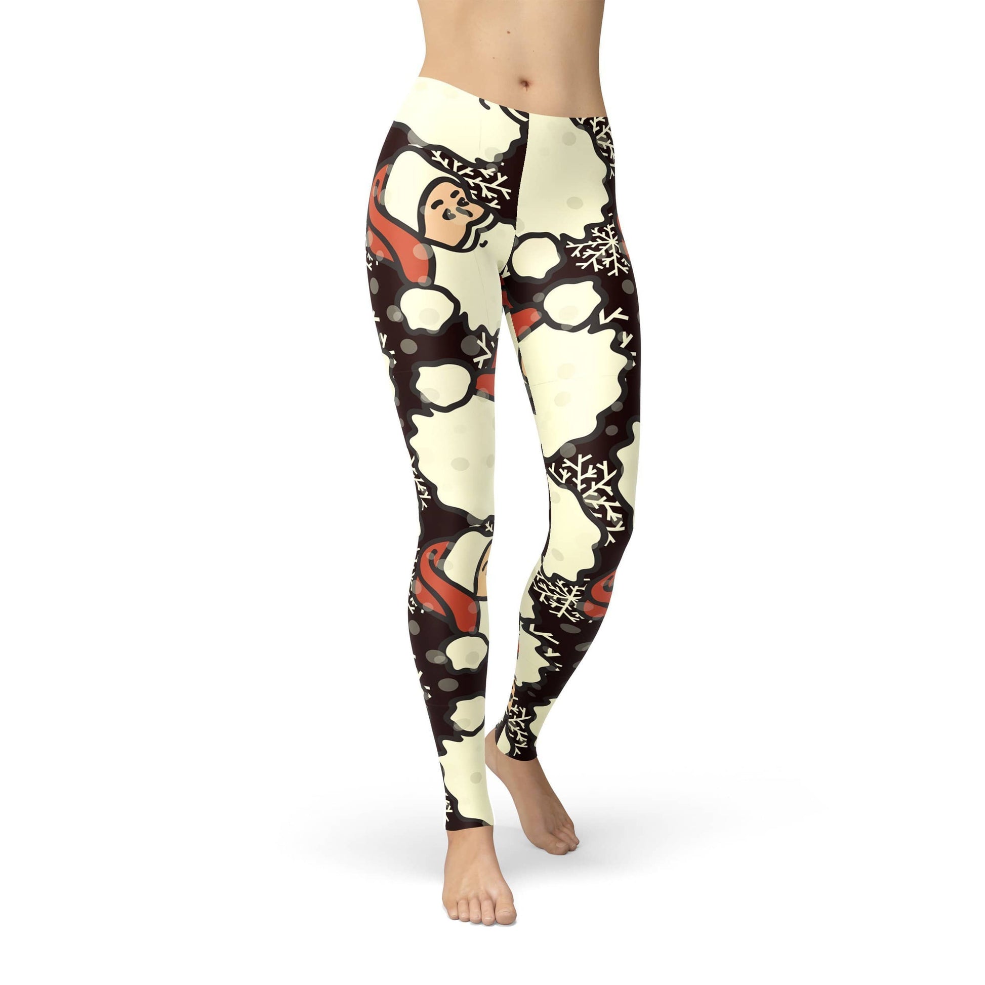 The Handmade Women's Printed Santa Heads Leggings feature an all-over design on soft lycra fabric for lasting comfort.