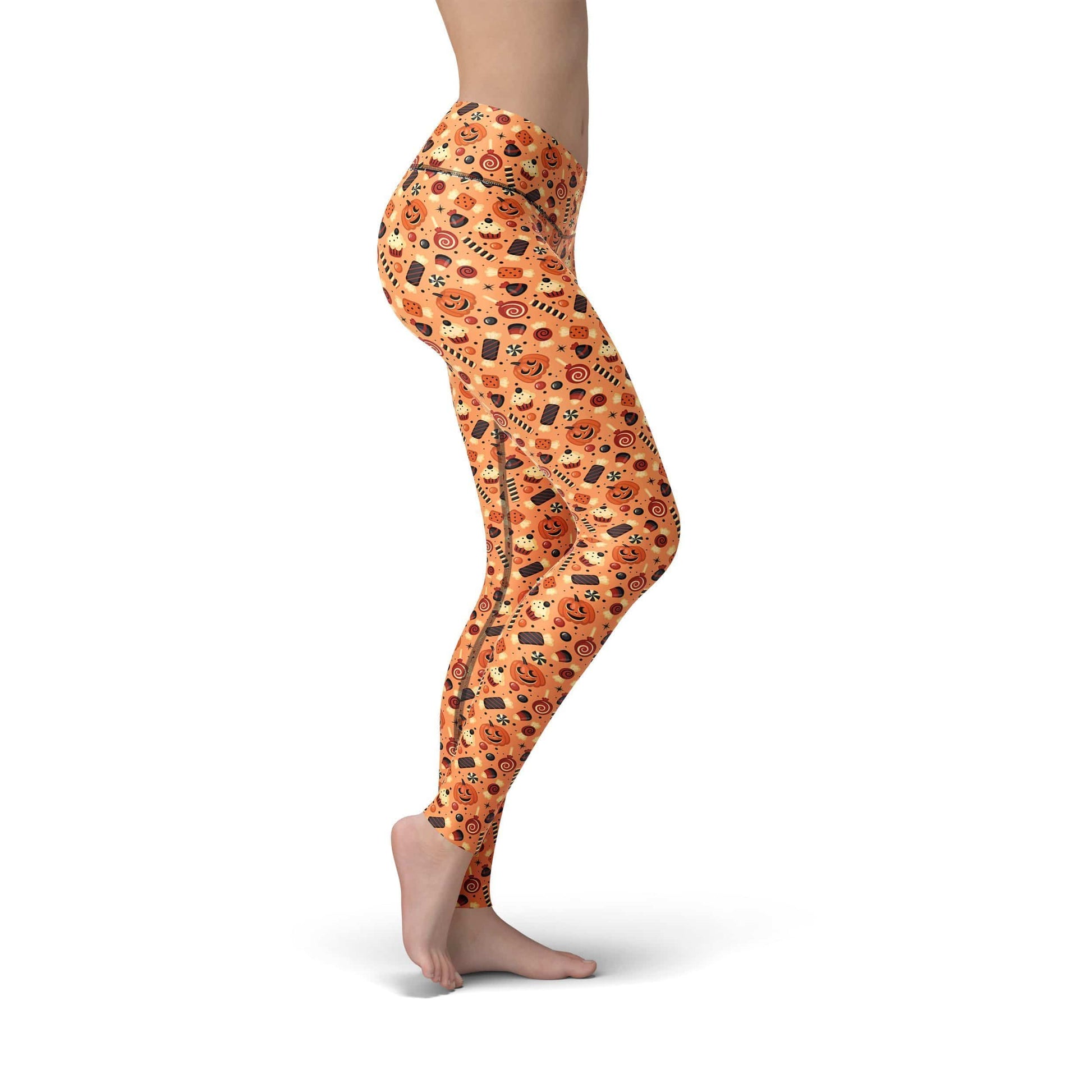 The Handmade Pumpkin Candies Leggings feature an all-over design on Soft Lycra or lasting comfort. You will look amazing no matter what you do, stretch, bend, and hit the streets in this move-easy essential.