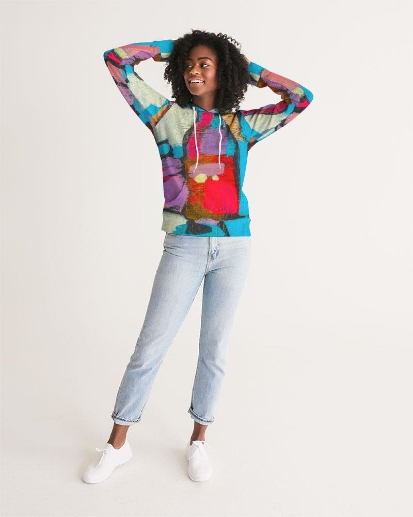 Womens Hoodie - Pullover Hooded Sweatshirt / Multicolor Graphic