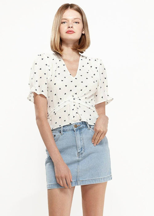 Women's Triangle Print Puff Sleeve Blouse in White triangle