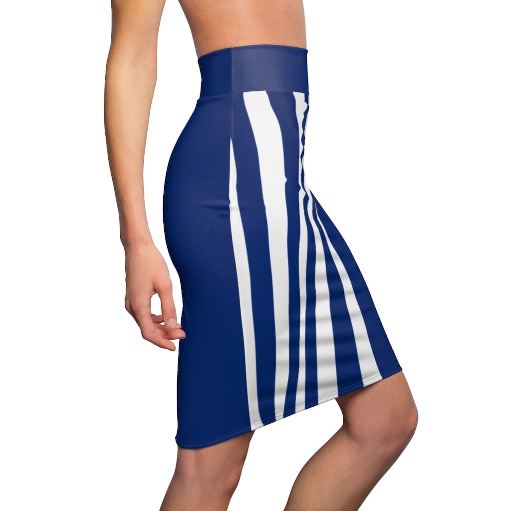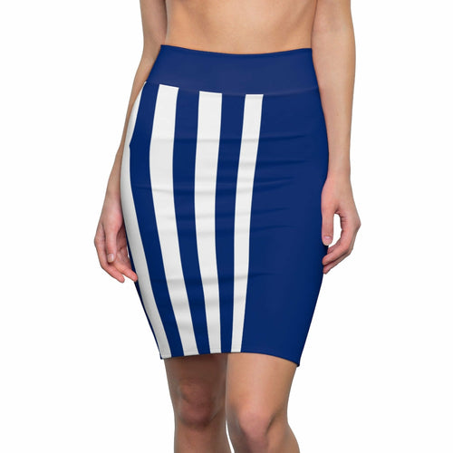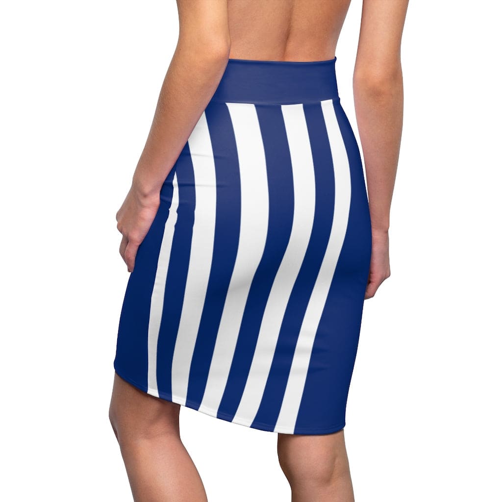 Womens Pencil Skirt Blue/white Stripe - Stretch Mini - S152393