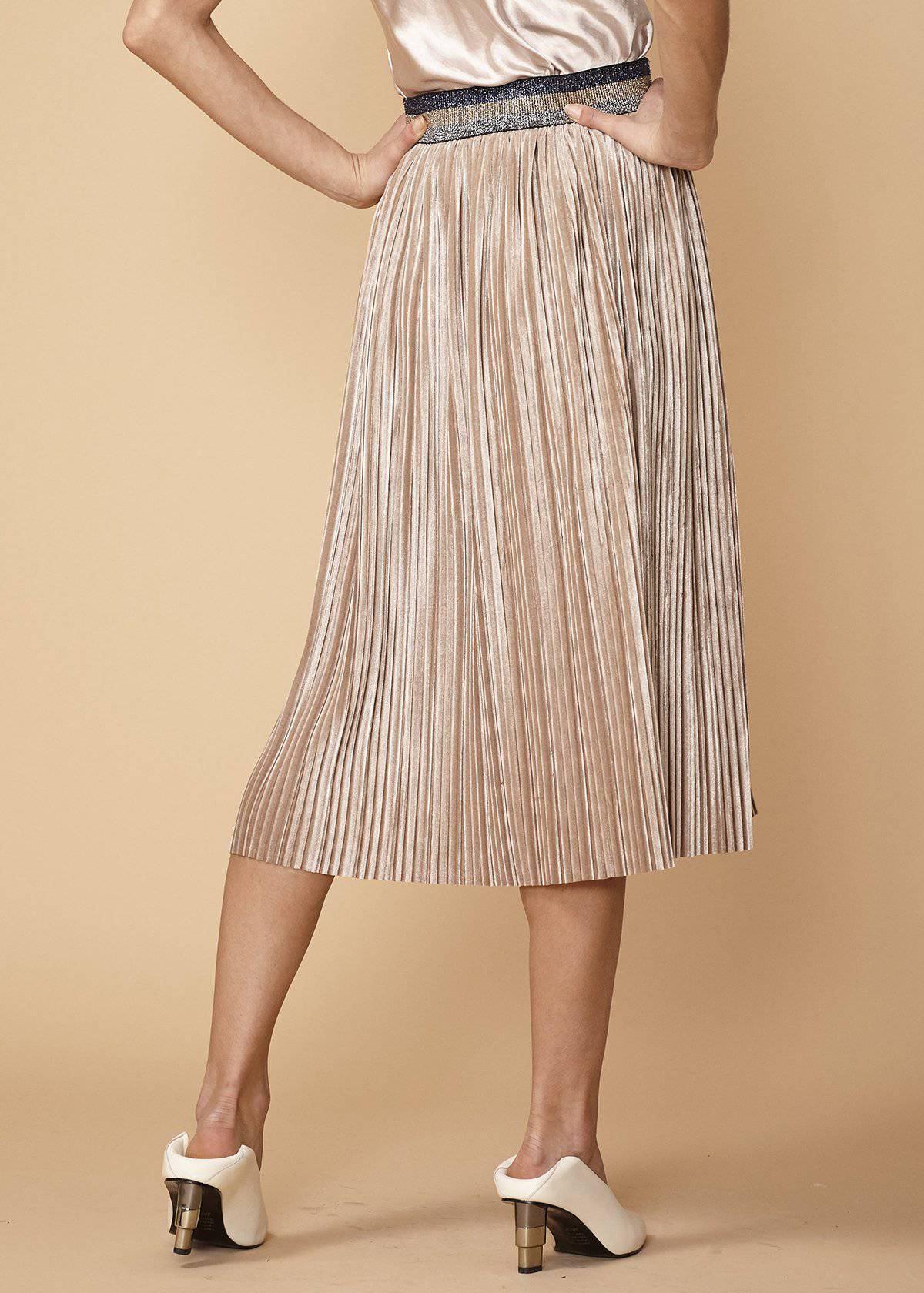 Women's Glitter Waistband Pleated Skirt in Champagne