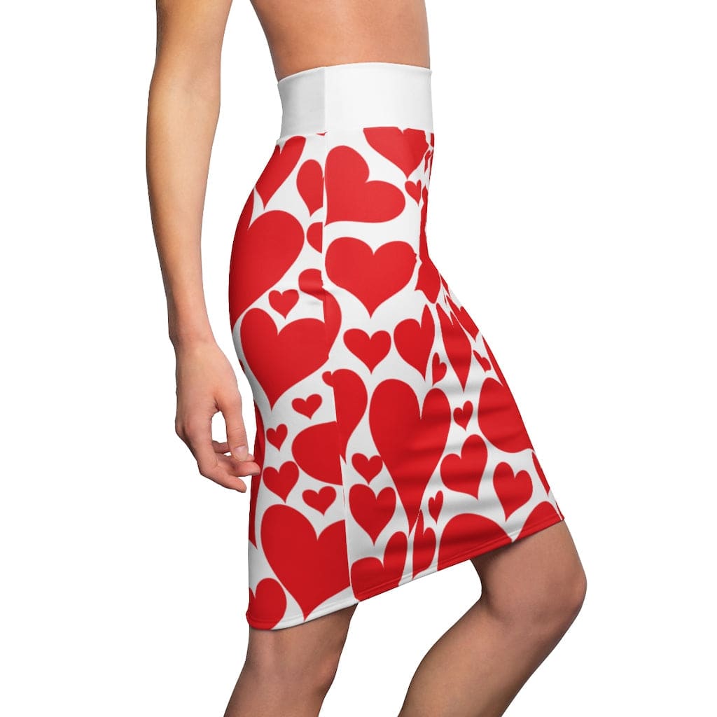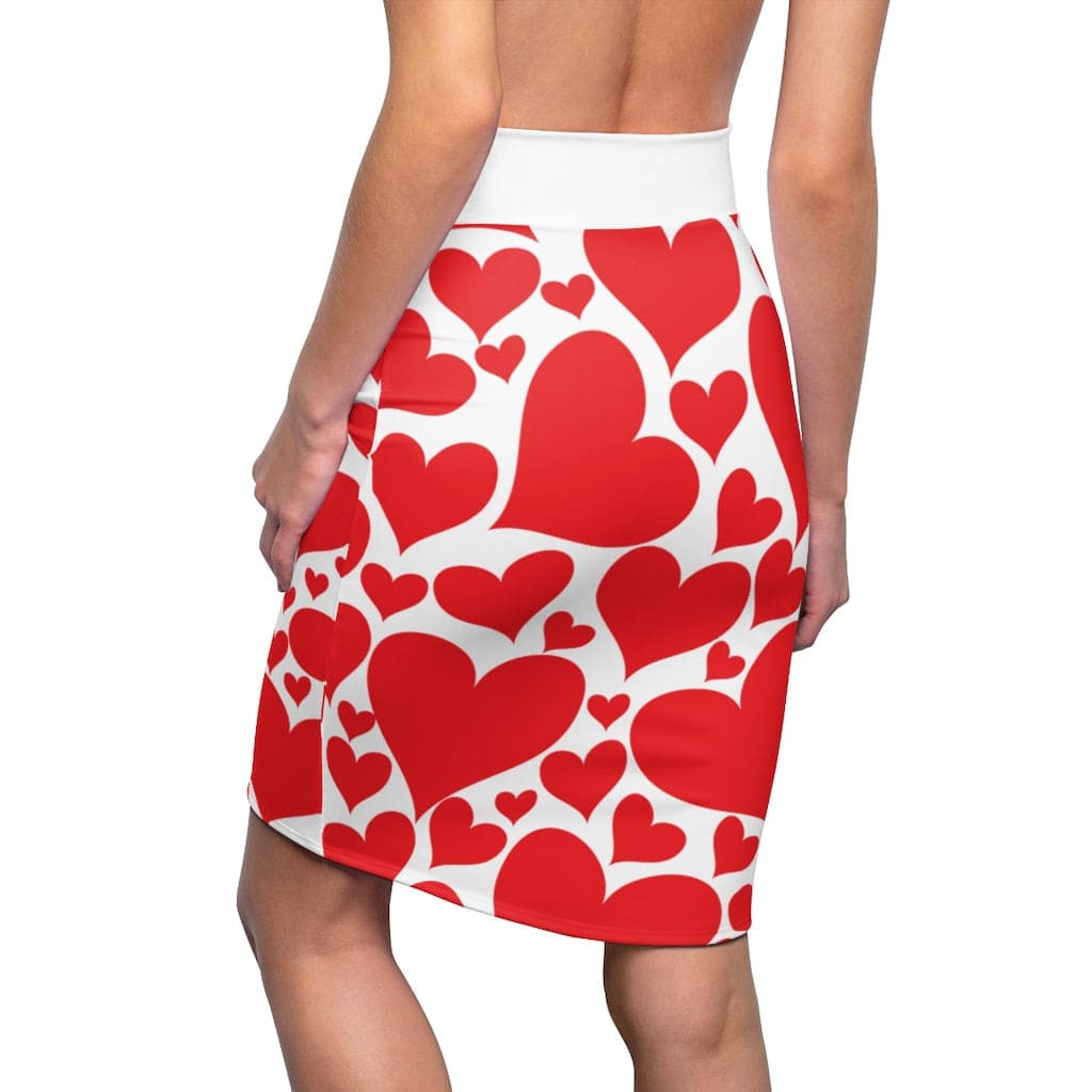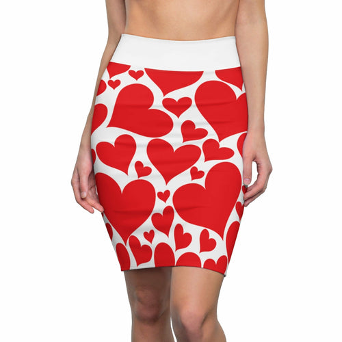 Womens Pencil Mini Skirt - Love Red Hearts Illustration