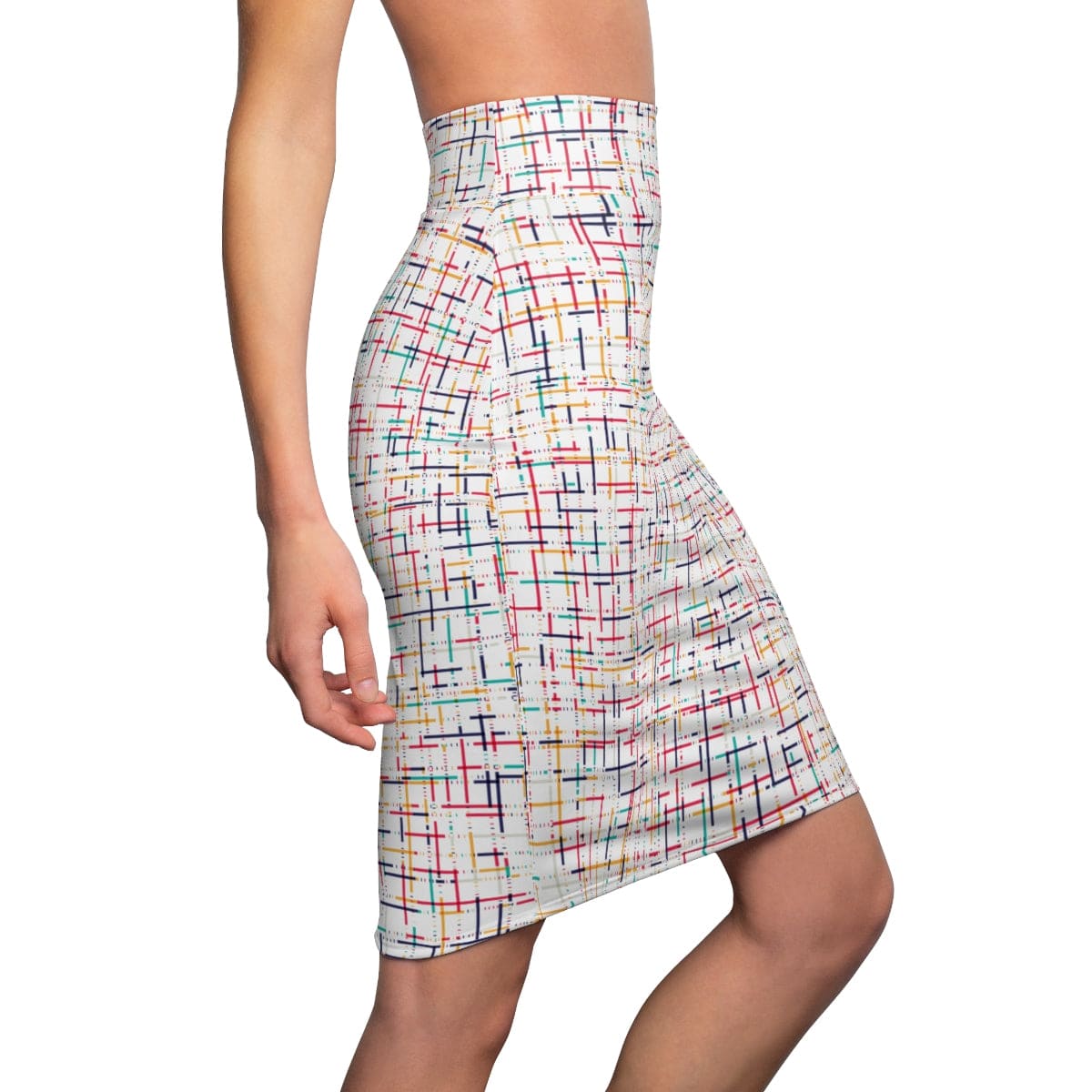 Womens Pencil Skirt - High Waist Stretch - Multicolor Stripes
