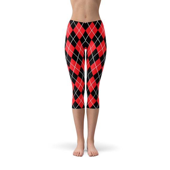 Womens Red Argyle Capri Leggings - Harley Quinn