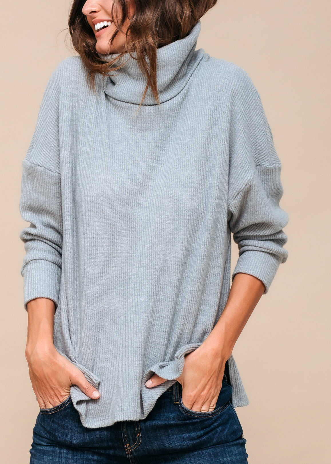 Women's casual turtle neck sweater top in comfy oversized fit.