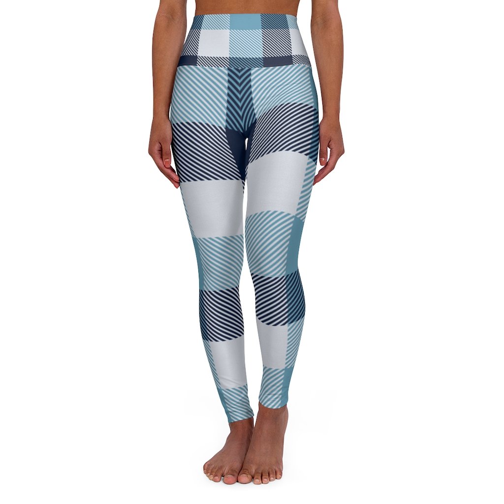Womens High-waist Fitness Legging Yoga Pants - Blue White Plaid